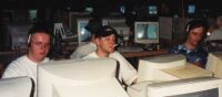[S@W]Zirkon und [S@W]Lordal präsentieren sich der Kamera, während daben unsere CS Section gelangweilt auf die Monitore starrt.