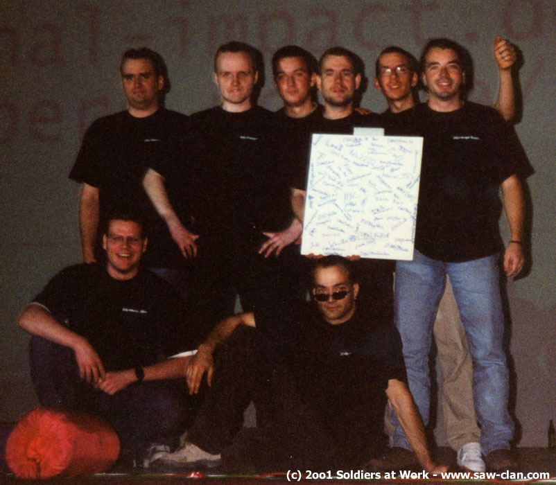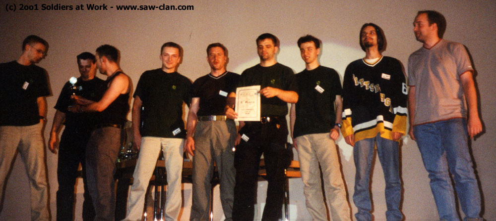 Im Namen des ganzen S@W Clans möchte ich mich bei allen bedanken, die dazu beigetragen daß wir uns wieder prächtig auf dieser LAN amüsiert haben: neben den Veranstaltern besonders unseren befreundeten Clans CU, IQ und r@ts die wir inwzischen ja auf jeder LAN treffen! =:)