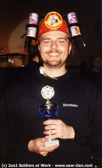 Am nächsten Morgen liefen noch die 1on1 Turniere. Hier konnte sich im TFC 1on1 [r@ts]Dalminator durchsetzen. Da sein Team (zusammen mit DoW) auch noch den zweiten Platz beim Turnier gewonnen hatte, sieht man ihn hier als strahlenden Sieger, behängt mit dem Sachgewinn für das 1on1! =:)