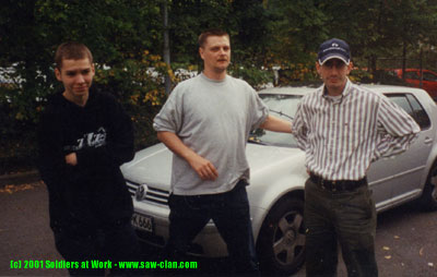 CD-Kaserne Von Links nach Rechts: [~SI~]grill^se, [S@W]Lehmann und [GoE]HellkeepeR vor Satans Dienstwagen.
