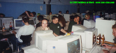 Was mich mittlerweile an LANs am meisten ankotzt, sind die Turniere. Die ganze Zeit ist man nur am zocken, obwohl man doch viel lieber mal mit ner ganzen Latte von Leuten quasseln würde, die man vielleicht nie wieder live sieht. Für uns war das umso ägerlicher, als wir ohnehin nicht viele Chancen auf den Turniertitel hatten da uns mit Exe, Obi und Goddi einfach mal 3 Stammspieler fehlten.