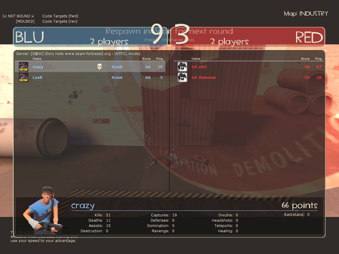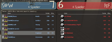 pl_goldrush 100.0% cp_industry 100.0% cp_granary 100.0% ctf_turbine_v3 100.0% ctf_2fort 100.0% cp_mach4 100.0% cp_badlands 66.7% cp_well 50.0% ctf_turbine 50.0%