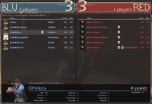 cp_pro_granary 100.0% cp_freight 100.0% cp_badlands 100.0% ctf_turbine_v3 100.0% ctf_turbine 66.7% cp_well 40.0% cp_granary 0.0% cp_gravelpit 0.0% ctf_2fort 0.0%