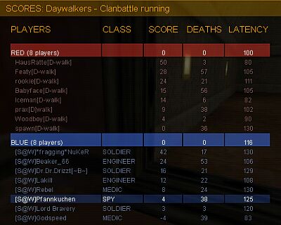Clanwar �berblick aller Begegnungen der beiden Clans |